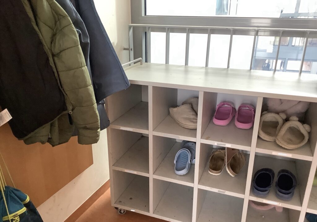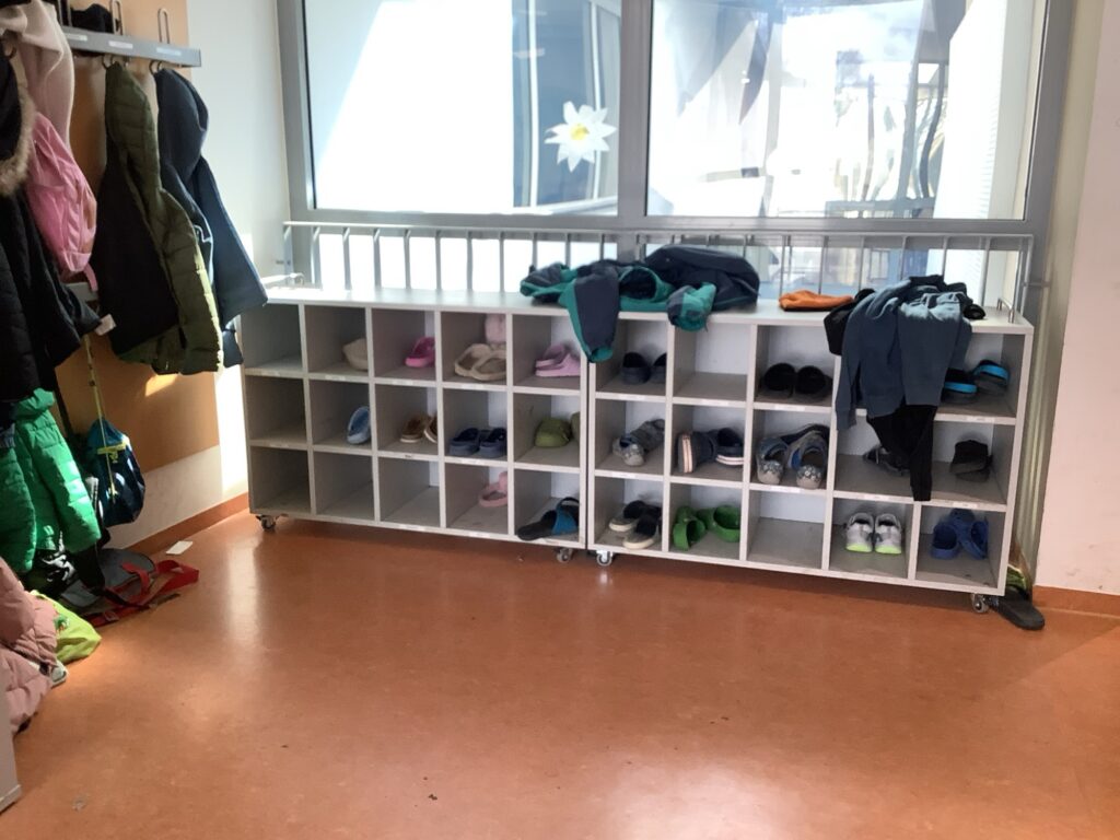 - Vor der Pause und dem Mittagsband ziehe ich meine Hausschuhe aus und meine Straßenschuhe an.